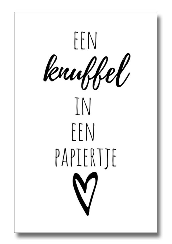 Mini kaartje met de tekst: 'Een knuffel in een papiertje'.