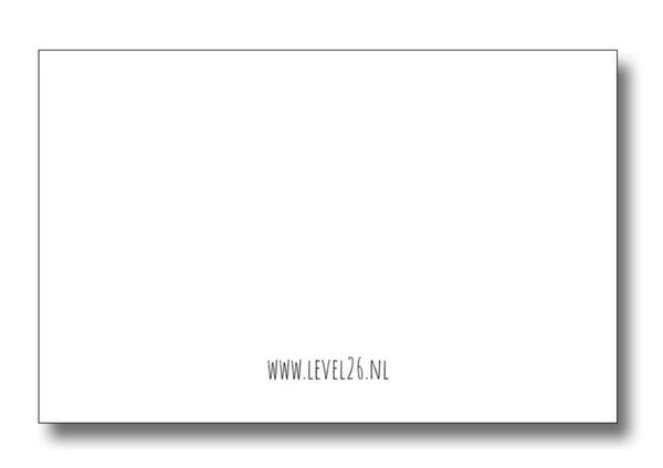 - Op de achterkant van het kaartje staat in het klein 'www.level26.nl' en is verder blanco zodat je daar zelf wat op kunt schrijven.