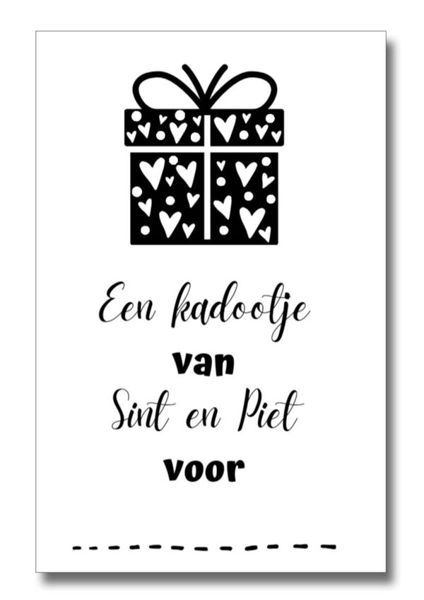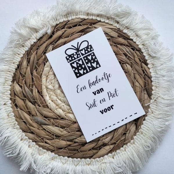Mini kaartje met de tekst: 'Een kadootje van Sint en Piet voor .....'.