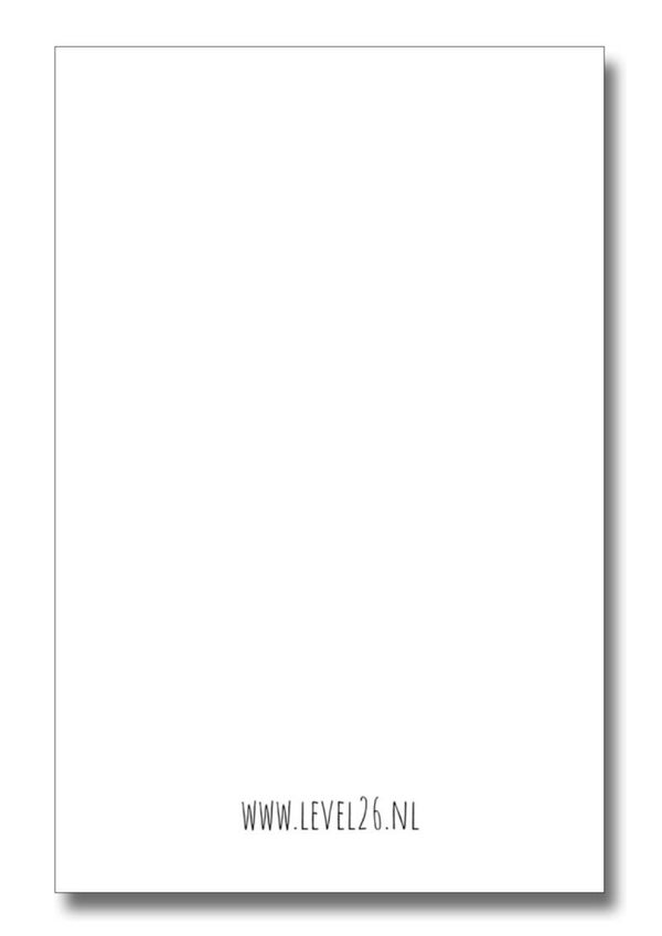 - Op de achterkant van het kaartje staat in het klein 'www.level26.nl' en is verder blanco zodat je daar zelf wat op kunt schrijven.